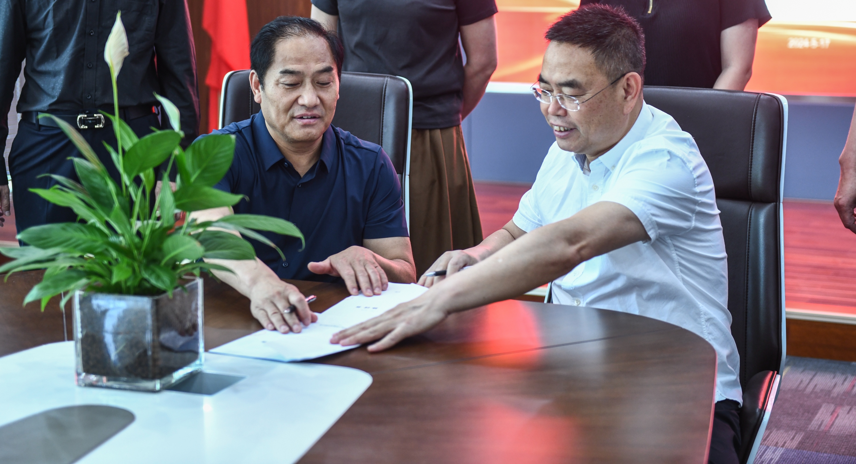 授牌儀式上,胡振柱董事長代表集團公司與城區辦事處總經理進行現場簽約、授牌。胡振柱董事長在致辭中提到,辦事處在業務發展上應立足新能源、深耕變配電、聚焦項目EPC,在客戶關系中應當從客戶利益出發,選擇合適的產品和服務,提升營銷質量。增設城區辦事處,是實現日昌經營目標的具體舉措,更是日昌集團立足北京,謀取長遠發展的實際行動,對日昌集團高質量發展具有重要意義。
